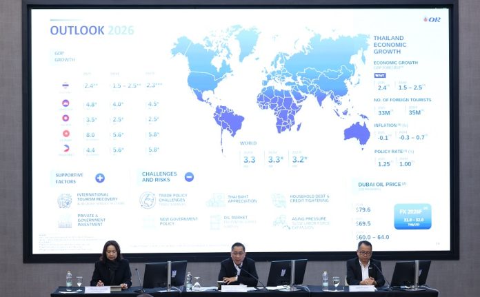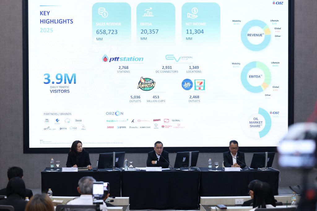 ในปี 2568 แม้บริษัท ปตท. น้ำมันและการค้าปลีก จำกัด (มหาชน) หรือ OR จะมีกำไรก่อนหักดอกเบี้ย ภาษี ค่าเสื่อมราคา และค่าตัดจำหน่าย (EBITDA) จำนวน 20,357 ล้านบาท เพิ่มขึ้น 2,691 ล้านบาท หรือ 15.2% แต่ก็มีรายได้ขายและบริการ 658,723 ล้านบาท ลดลง 9 % จากปีก่อนหน้า สาเหตุจากปัจจัยที่ควบคุมได้ยากทั้งการใช้พลังงานของประเทศลดลง และราคาน้ำมันเฉลี่ยลดลง ปีนี้ความเสี่ยงก็ยังไม่หมดไปราคาน้ำมันดิบยังอ่อนตัวปีนี้ OR คาดว่าจะลดเหลืออยู่ที่ 60-64 ดอลล่าร์ต่อบาร์เรลจากปีก่อนเฉลี่ย 69 ดอลลาร์ รวมถึงความไม่แน่นอนของภูมิรัฐศาสตร์ และปัญหาความขัดแย้งกับกัมพูชา ซึ่งเป็นประเทศที่ OR คิดจะปักธงการลงทุนที่นั่น