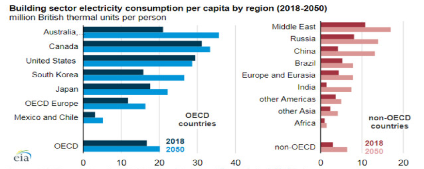 – ประเทศไทย Thailand : คาดการณ์ว่า ความต้องการพลังงานไฟฟ้าในประเทศไทยจะเพิ่มขึ้นจากประมาณ 217,349 กิกะวัตต์ชั่วโมง GWh ในปี 2568 เป็นประมาณ 259,324 กิกะวัตต์ชั่วโมง GWh ภายในปี 2573 โดยได้รับแรงหนุนจากกิจกรรมทางอุตสาหกรรม Industrial Activity, การขยายตัวของเมือง Urbanization และการเปลี่ยนมาใช้ระบบขนส่งไฟฟ้า Electrification of Transport ..