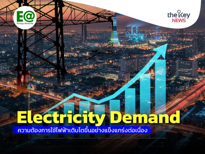 ความต้องการใช้กำลังไฟฟ้าทั่วโลก Global Electricity Demand ได้รับการคาดหมายว่า จะเพิ่มขึ้นอย่างมาก ระหว่างปี 2568-2573 โดยได้รับแรงหนุนจากการเติบโตของภาคอุตสาหกรรม Industrial Growth, การปรับไปใช้พลังงานไฟฟ้าในการขนส่ง Electrification of Transport โดยเฉพาะการใช้ยานยนต์ไฟฟ้า Electric Vehicles : EVs, การใช้เครื่องปรับอากาศที่เพิ่มขึ้น Rising Air Conditioning Use และการเติบโตอย่างมีนัยสำคัญของศูนย์ข้อมูล Significant Growth of Data Centers ที่ขับเคลื่อนด้วยปัญญาประดิษฐ์ Artificial Intelligence : AI ..