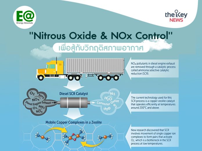 ปัจจุบัน ระบบตัวเร่งปฏิกิริยาแบบเลือก Selective Catalytic Reduction : SCR คือ เทคโนโลยีการบำบัดไอเสียที่ลดก๊าซพิษไนโตรเจนออกไซด์ Nitrogen Oxides : NOx โดยการฉีดสารละลายยูเรีย AdBlue® เข้าไปทำปฏิกิริยาในท่อไอเสียด้วยตัวเร่งปฏิกิริยา ทำให้ NOx เปลี่ยนเป็นก๊าซไนโตรเจน Nitrogen : N2 Gas และไอน้ำที่ไม่มีอันตราย ซึ่งช่วยลดมลพิษทางอากาศได้อย่างมีประสิทธิภาพสูง .. สำหรับการลดไนตรัสออกไซด์ Nitrous Oxide : N2O นั้น ระบบ SCR มักเน้นที่ NOx แต่ N2O ก็ลดลงได้ในกระบวนการร่วมด้วย ซึ่งทั้งหมดนี้ คือ เทคโนโลยีสำคัญในเครื่องยนต์ดีเซลยุคใหม่ Modern Diesel Engines และโรงไฟฟ้า Power Plants เพื่อสิ่งแวดล้อมที่ยั่งยืน Sustainable Environment ..