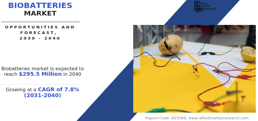 อ้างถึงข้อมูลการสำรวจตลาดของ Allied Market Research พบว่า ตลาดแบตเตอรี่ชีวภาพทั่วโลก Global Biobatteries Market ประเมินว่าจะมีมูลค่าประมาณ 140.8 ล้านเหรียญสหรัฐฯ ในปี 2573 จาก 87.9 ล้านเหรียญสหรัฐฯ ในปี 2567 และคาดว่าจะเติบโตถึง 295.5 ล้านเหรียญสหรัฐฯ ภายในปี 2583 ด้วยอัตราการเติบโตเฉลี่ยต่อปี Compound Annual Growth Rate: CAGR หมายถึง อัตราผลตอบแทนสำหรับตลาดแบตเตอรี่ชีวภาพทั่วโลก Global Biobatteries Market ที่เติบโตจากยอดดุลเริ่มต้นไปถึงยังยอดดุลสิ้นสุด รวมสมมติฐานว่ากำไรจะถูกนำกลับมาลงทุนหมุนเวียนใหม่ทุกสิ้นปีของช่วงอายุการลงทุน อยู่ที่ค่า CAGR 7.8 % ในช่วงระยะเวลาที่คาดการณ์ ปี 2574 – 2583 .. รายงานฉบับนี้นำเสนอการวิเคราะห์อย่างละเอียดเกี่ยวกับแหล่งลงทุนชั้นนำ Analysis of the Top Investment Pockets, กลยุทธ์ที่ประสบความสำเร็จสูงสุด Top Winning Strategies, ปัจจัยขับเคลื่อน และโอกาส Drivers & Opportunities, ขนาด และการคาดการณ์ของตลาด Market Size & Estimations, ภูมิทัศน์การแข่งขัน Competitive Landscape และแนวโน้มตลาดที่เปลี่ยนแปลงไป Evolving Market Trends .. การศึกษาตลาดนี้ เป็นแหล่งข้อมูลที่มีประโยชน์สำหรับผู้นำตลาด Helpful Source of Information for the Frontrunners, ผู้ประกอบการรายใหม่ New Entrants, นักลงทุน Investors และผู้ถือหุ้น Shareholders ในการกำหนดกลยุทธ์สำหรับอนาคต และยกระดับสถานะของตนในตลาด ..