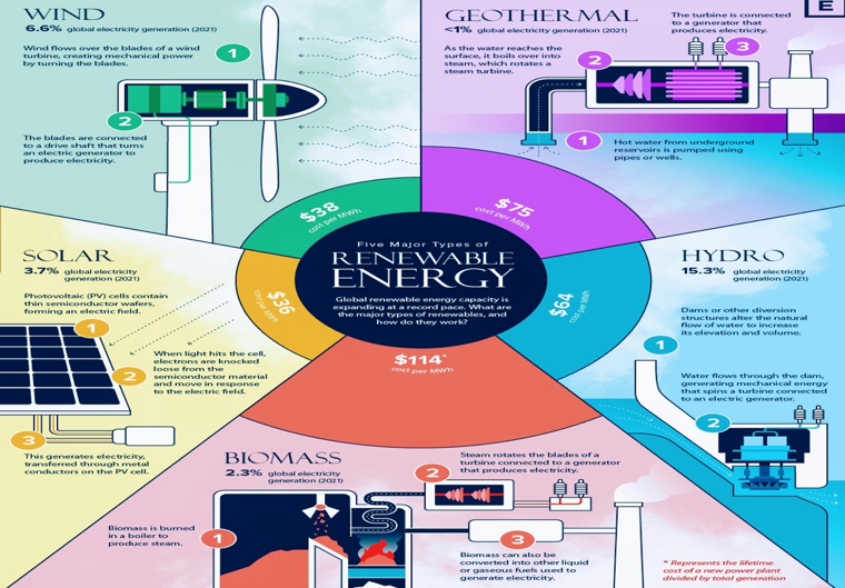 – แหล่งพลังงานหมุนเวียนหลักที่หลากหลาย Diverse Renewable Sources :-