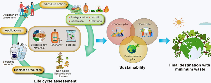 ทั้งนี้ ไบโอพลาสติก Bioplastics สามารถใช้ของเสียที่ไม่ได้ใช้มาก่อนได้ เช่น ฟาง Straw, เศษไม้ Wood Chips, ขี้เลื่อย Sawdust และขยะอาหาร Food Wastes โดยจากการศึกษาวิเคราะห์วงจรชีวิต พบว่า ไบโอพลาสติก Bioplastics บางชนิด สามารถผลิตขึ้นโดยปล่อยคาร์บอนฟุตพริ้นท์น้อยกว่าไบโอพลาสติกฟอสซิล Fossil Bioplastics เช่น เมื่อใช้ชีวมวลเป็นวัตถุดิบ และสำหรับการผลิตพลังงาน Using Biomass as a Raw Material & for Energy Production .. นอกจากนี้ ไบโอพลาสติก Bioplastics หลายชนิดยังย่อยสลายได้ทางชีวภาพ หรือนำไปทำปุ๋ยหมักได้ ซึ่งสามารถช่วยลดขยะพลาสติก Reduce Plastic Waste และลดมลภาวะ Reduce Pollution ได้อย่างยอดเยี่ยม ..