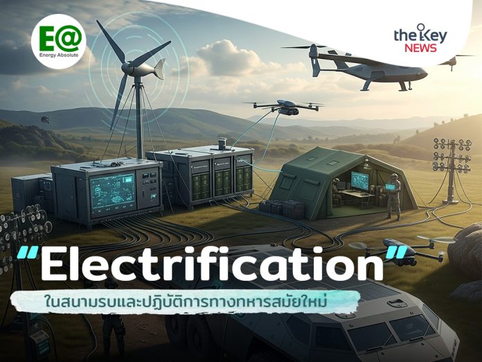 การปรับเปลี่ยนไปใช้กำลังไฟฟ้า Electrification มีบทบาทเพิ่มมากขึ้นในการทำสงครามสมัยใหม่ Growing Role in Modern Warfare ซึ่งครอบคลุมทุกอย่างตั้งแต่อุปกรณ์ของทหารแต่ละคน Individual Soldier Equipments ไปจนถึงระบบพลังงานไฟฟ้าของยานพาหนะ อากาศยาน และเรือ Power Systems of Vehicles, Aircrafts & Ships .. แนวโน้มนี้ ขับเคลื่อนโดยความต้องการเพิ่มประสิทธิภาพสนามรบ Need for Increased Battlefield Efficiency, ความยั่งยืน Sustainability และความสามารถในการปรับตัว Adaptability .. พื้นที่สำคัญของการใช้กำลังไฟฟ้า ได้แก่ การผลิตกำลังไฟฟ้า Power Generation, การจัดเก็บ Storage, การจัดการ Management และการส่งจ่ายกำลังไฟฟ้า Distribution ซึ่งทั้งหมดมุ่งเป้าไปที่การเพิ่มประสิทธิภาพ และการยกระดับพลังอำนาจของกำลังทหาร ..