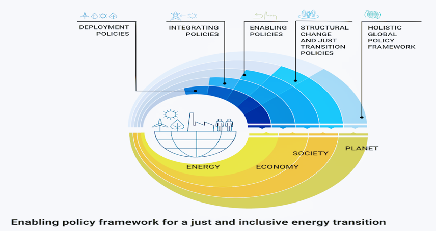 ความสำเร็จของการเปลี่ยนผ่านพลังงาน Energy Transition นั้น เกี่ยวข้องใกล้ชิด และขึ้นอยู่กับการเปลี่ยนแปลงของภาคพลังงานทั่วโลกขนานใหญ่จากแหล่งฟอสซิลไปสู่แหล่งพลังงานคาร์บอนเป็นศูนย์ Fossil – Based to Zero – Carbon Energy Sources ภายในครึ่งหลังของศตวรรษนี้ ซึ่งช่วยลดการปล่อยก๊าซคาร์บอนไดออกไซด์ที่เกี่ยวข้องกับพลังงาน Reducing Energy – Related CO2 Emissions รวมทั้ง เพื่อลดการเปลี่ยนแปลงสภาพภูมิอากาศ Mitigate Climate Change และจำกัดอุณหภูมิโลกให้อยู่ต่ำกว่าจุดเล็งที่ 1.5°C ของระดับก่อนยุคอุตสาหกรรม ..