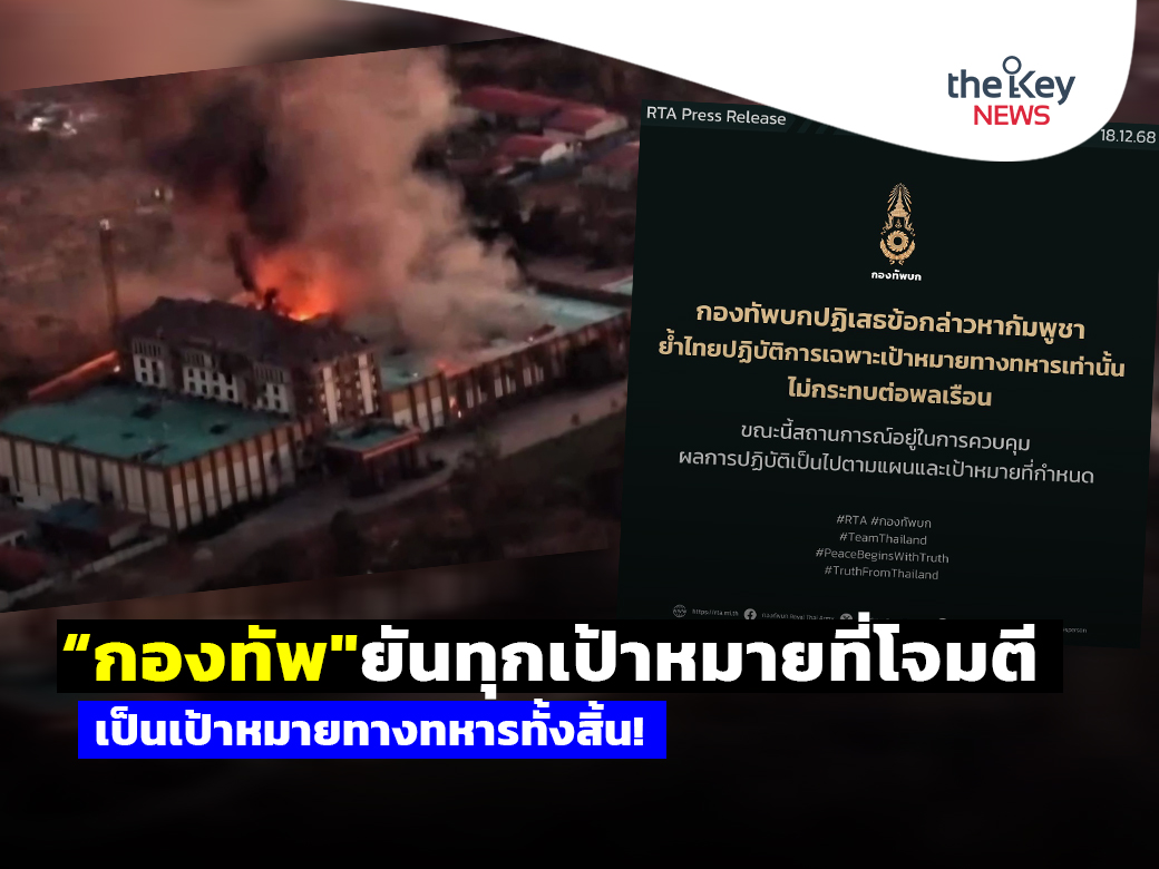 @@@……สวัสดีท่านผู้อ่านทุกท่าน พบกันทุกวันเสาร์กับคอลัมน์ “Military Key” ทางเว็บไซต์ https:// thekey.news ซึ่งตรงกับวันเสาร์ที่ 20 ธ.ค.68 สถานการณ์การสู้รบระหว่างไทย กับ กัมพูชา ยังคงดำเนินการต่อไป จนกว่ากัมพูชาจะประกาศยอมแพ้และเลิกรุกรานไทย