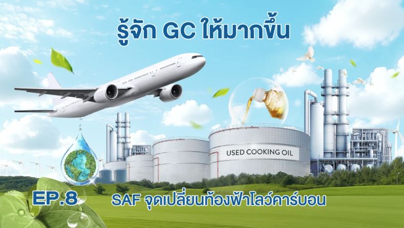เมื่อช่วงต้นปี 2568 โรงกลั่นชีวภาพของ GC ได้ประกาศความสำเร็จในการผลิตเชื้อเพลิงอากาศยานแบบยั่งยืน (Sustainable Aviation Fuel: SAF) จากน้ำมันพืชใช้แล้วได้เป็นรายแรกของประเทศโดยไม่ต้องสร้างโรงงานใหม่ เราใช้การต่อยอดองค์ความรู้และความเชี่ยวชาญ พัฒนากระบวนการให้สามารถใช้งานร่วมกับหน่วยการกลั่น เดิมได้ ทำให้สามารถประหยัดการลงทุน ด้วยคุณภาพ SAF ที่ได้รับการรับรองมาตรฐานตามสากล ISCC CORSIA และมาตรฐาน ISCC Plus