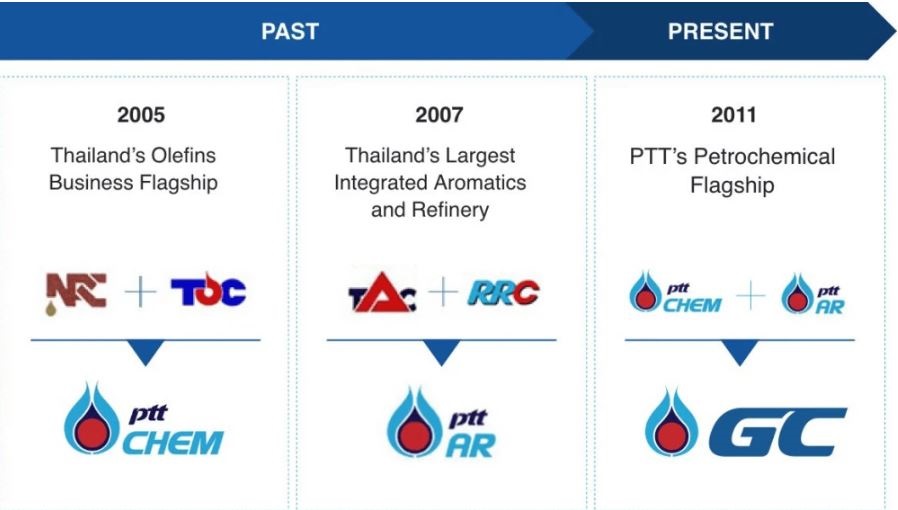 ต่อมาในปี 2548 NPC ควบรวมกับบริษัท ไทยโอเลฟินส์ จำกัด (มหาชน) หรือ (TOC) เกิดเป็นบริษัทใหม่ภายใต้ชื่อ บริษัท ปตท. เคมิคอล จำกัด (มหาชน) (PTTCH) ซึ่งนับเป็นบริษัทเกี่ยวกับโอเลฟินส์ที่ใหญ่ที่สุดของประเทศในขณะนั้น และในปี 2554 PTTCH จึงควบรวมกับ PTTAR กลายเป็น GC ที่คุณรู้จักในวันนี้