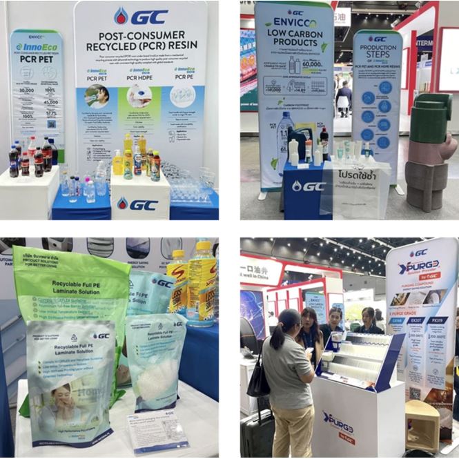 นวัตกรรมของ GC ไม่เพียงแต่เกิดขึ้นในห้องทดลอง แต่ยังถูกนำไปแสดงบนเวทีระดับนานาชาติอย่างภาคภูมิ ไม่ว่าจะเป็น งาน Plastics and Rubber Thailand 2025 ที่กรุงเทพฯ หรืองาน RotoMould 2025 ที่ออสเตรเลีย ในทั้งสองเวที GC ได้เปิดตัวผลิตภัณฑ์และโซลูชันที่สะท้อนถึงความสามารถของไทยในการพัฒนาเคมีภัณฑ์และพลาสติกอย่างยั่งยืน และที่สำคัญคือสามารถปรับใช้ได้จริงในภาคอุตสาหกรรม โดยเวที Plastics and Rubber Thailand 2025 ที่กรุงเทพฯ GC ขนทัพนวัตกรรมเคมีภัณฑ์รักษ์โลกกับผลิตภัณฑ์กลุ่ม Low Carbon & Sustainability Products อย่าง Recyclable, Recycled, Bioplastic และ Purging Compound ผลิตภัณฑ์ที่มีประสิทธิภาพสูงและเป็นมิตรต่อสิ่งแวดล้อม นี่คือตัวอย่างของการนำนวัตกรรมมาผสานกับความต้องการของตลาดได้อย่างลงตัว