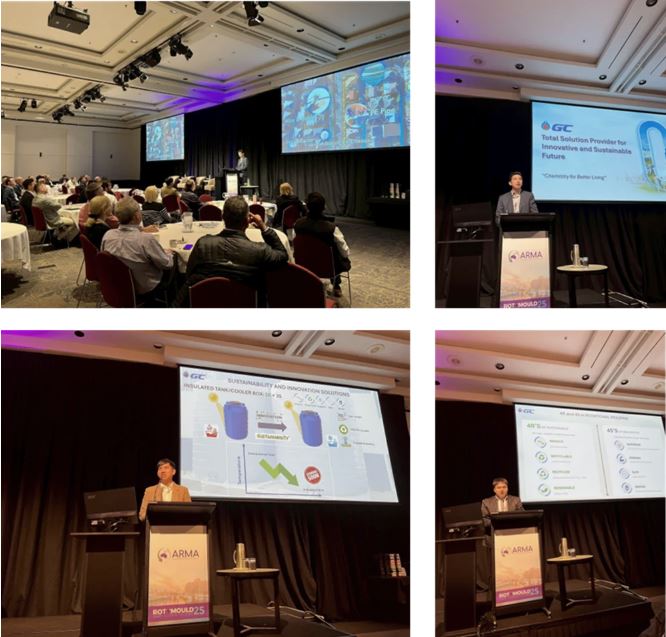 จากกรุงเทพฯ สู่เวทีโลก GC ยังได้เข้าร่วมงาน RotoMould 2025 ประเทศออสเตรเลีย โดยนำเสนอนวัตกรรมและผลิตภัณฑ์โรโตโมลดิ้ง (Rotomoulding) หรือการขึ้นรูปพลาสติกด้วยวิธีหมุนรอบแกน (Rotational Molding) โดย GC ได้พัฒนาเม็ดพลาสติกที่ช่วยให้การขึ้นรูปผลิตภัณฑ์ด้วยวิธีหมุนรอบแกน มีประสิทธิภาพมากขึ้น ทั้งในแง่ของการลดต้นทุนการผลิต, ลดของเสีย และเพิ่มความหลากหลายในสีสันและพื้นผิวของผลิตภัณฑ์ สิ่งนี้เปิดโอกาสให้นักออกแบบและผู้ผลิตสามารถสร้างผลิตภัณฑ์ที่มีความคิดสร้างสรรค์มากขึ้น เช่น ถังเก็บน้ำสีสันสดใส เฟอร์นิเจอร์กลางแจ้งที่ดูสวยงามพร้อมคุณสมบัติรีไซเคิลได้ หรือแม้แต่ของเล่นและอุปกรณ์ตกแต่งบ้านที่เป็นมิตรต่อสิ่งแวดล้อม ทั้งหมดนี้ไม่ใช่แค่ตอบโจทย์ลูกค้าในประเทศเท่านั้น แต่ยัง “พร้อมต่อยอดสู่ตลาดโลก” ที่กำลังมองหา “วัสดุทางเลือกที่ยั่งยืน”