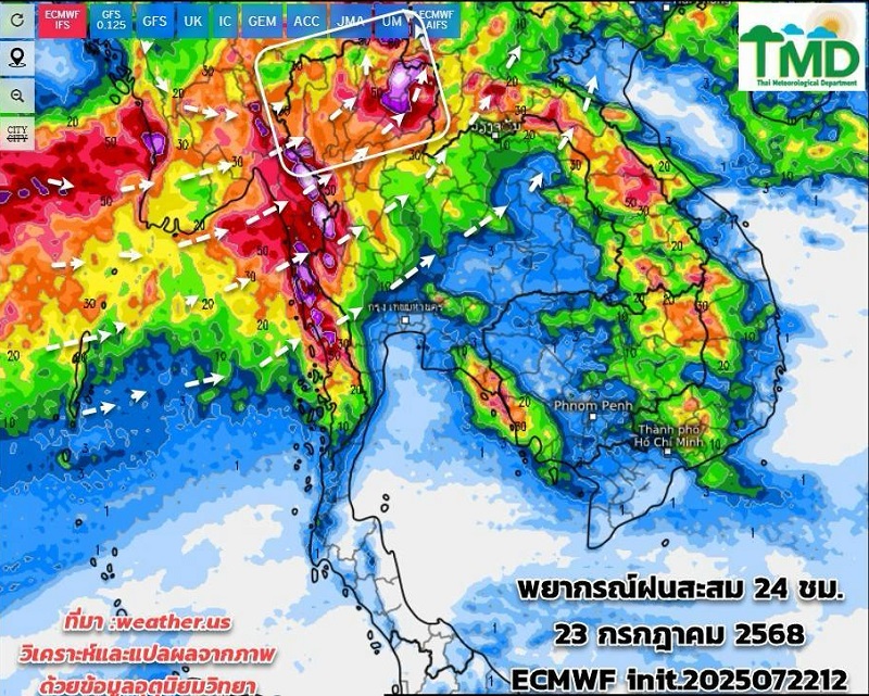 เมื่อวันที่ 23 ก.ค.68 นายอนุกูล พฤกษานุศักดิ์ รองโฆษกประจำสำนักนายกรัฐมนตรี เปิดเผยว่า กรมอุตุนิยมวิทยา ออกประกาศเตือน พายุโซนร้อนกำลังแรง “วิภา” คาดจะอ่อนกำลังลงเป็นพายุดีเปรสชันและหย่อมความกดอากาศต่ำตามลำดับ และจะเคลื่อนตัวตามแนวร่องมรสุมที่พาดผ่านประเทศลาวตอนบน และภาคเหนือตอนบนในระยะต่อไป และทำให้หลายพื้นที่ของไทยโดยเฉพาะภาคเหนือ ภาคตะวันออกเฉียงเหนือตอนบน ด้านตะวันตกของภาคกลาง และภาคตะวันออก มีฝนตกหนักไปจนถึง 24 ก.ค. นี้ รัฐบาลขอให้ประชาชนในบริเวณดังกล่าวระวังอันตรายจากฝนตกหนักถึงหนักมากและฝนที่ตกสะสม ซึ่งอาจทำให้เกิดน้ำท่วมฉับพลัน และน้ำป่าไหลหลาก โดยเฉพาะพื้นที่ลาดเชิงเขา ใกล้ทางน้ำไหลผ่านและพื้นที่ลุ่ม
