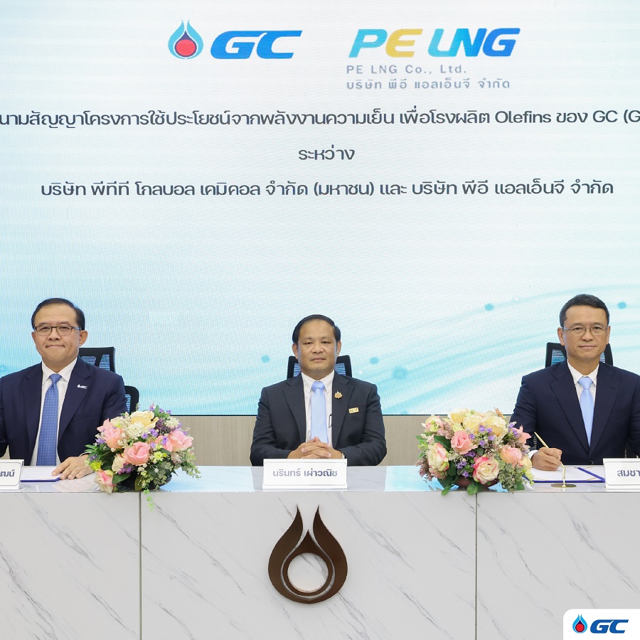 บริษัท พีทีที โกลบอล เคมิคอล จำกัด (มหาชน) หรือ GC ผู้นำในธุรกิจพลาสติกและเคมีภัณฑ์ระดับสากล เพื่อสร้างสรรค์คุณภาพชีวิต และ บริษัท พีอี แอลเอ็นจี จำกัด หรือ PE LNG ซึ่งเป็นธุรกิจร่วมทุนระหว่าง บริษัท พีทีที แอลเอ็นจี จำกัด (PTTLNG) และการไฟฟ้าฝ่ายผลิตแห่งประเทศไทย (กฟผ.) ลงนามในสัญญาความร่วมมือโครงการใช้ประโยชน์จากพลังงานความเย็นของก๊าซธรรมชาติเหลว (LNG) สำหรับโรงผลิตโอเลฟินส์ของ GC ซึ่งจะช่วยเพิ่มประสิทธิภาพด้านพลังงานและลดการปล่อยก๊าซเรือนกระจกในกระบวนการผลิตอย่างเป็นรูปธรรม