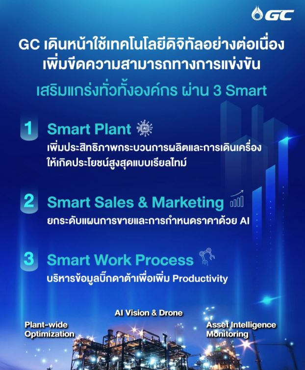 การดำเนินงานตามแนวทางดังกล่าว ไม่เพียงช่วยเพิ่มประสิทธิภาพการดำเนินงาน ลดต้นทุน และเสริมความปลอดภัย แต่ยังสะท้อนความก้าวหน้าของ GC ในการนำเทคโนโลยีดิจิทัลมาขับเคลื่อนองค์กร ยกระดับความสามารถทางการแข่งขัน และวางรากฐานสู่การเติบโตอย่างยั่งยืน ซึ่งล้วนเป็นปัจจัยสำคัญที่สนับสนุนผลการดำเนินงานที่ดีขึ้นในระยะยาว