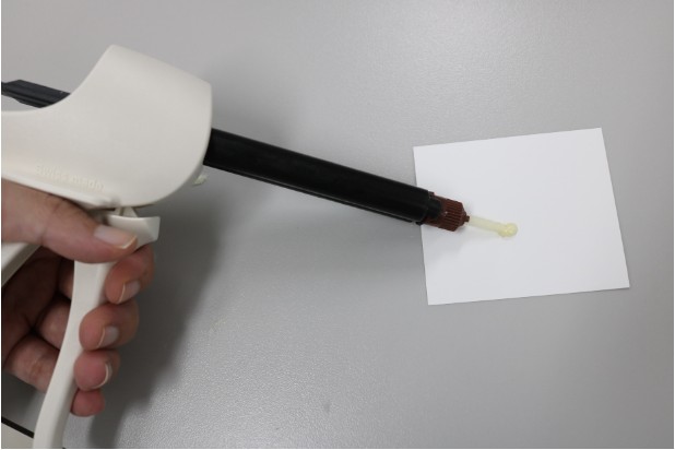 งานวิจัยนี้เป็นความร่วมมือข้ามศาสตร์ระหว่างห้องปฏิบัติการวิศวกรรมชีวภาพ มจธ.ในฐานะผู้เชี่ยวชาญด้านการพัฒนาวัสดุ กับคณะทันตแพทย์ศาสตร์ มธ.ผู้ให้โจทย์วิจัยและนำไปทดสอบใช้จริง ซึ่งจากการทดสอบได้คะแนนความพึงพอใจในระดับสูง เมื่อนำไปทดสอบประสิทธิภาพกับผลิตภัณฑ์มาตรฐานโลกที่เป็นที่นิยมใช้กันอย่างกว้างขวาง พบว่ามีคุณสมบัติเทียบเท่าหรือดีกว่าอย่างมีนัยสำคัญทางสถิติ ทั้งยังมีประสิทธิภาพในการแข็งตัวแบบ “Dual-cure” คือแข็งตัวได้ทั้งจากการฉายแสงและปฏิกิริยาเคมี ซึ่งช่วยแก้ปัญหาในจุดที่แสงส่องเข้าไม่ถึงภายใต้ครอบฟัน