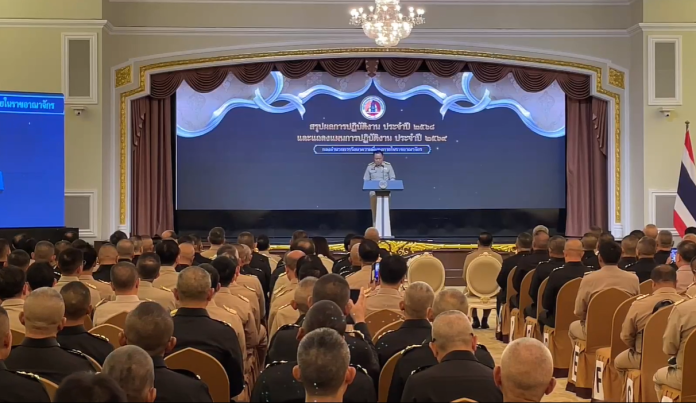 โดยนายกฯ กล่าวมอบนโยบายตอนหนึ่งว่า สถานการณ์ด้านความมั่นคงเป็นเรื่องที่รัฐบาลให้ความสำคัญในการดำเนินการอย่างเร่งด่วน โดยมีเป้าหมาย เพื่อยกระดับคุณภาพชีวิตของประชาชนและจัดการกับภัยคุกคามทุกรูปแบบที่จะมีผลกระทบซึ่งเป็นภัยต่อความมั่นคงของประเทศและความสงบเรียบร้อยของชาติ ตนได้หารือกับทางผู้บัญชาการทหารบก ในฐานะรองผอ.กอ.รมน.เพื่อกำหนดทิศทางการดำเนินงานในปี 2569 ให้มุ่งสู่ความมั่นคง ที่ยั่งยืนทันสมัยและยึดประชาชนเป็นศูนย์กลาง โดยเปลี่ยนการทำงานเป็นเชิงรุกแก้ปัญหา มุ่งเน้นการทำงานแบบบูรณาการ เพื่อให้เห็นผลชัดเจนและตอบสนองประชาชนได้ทุกสถานการณ์เพื่อให้ทุกหน่วยงานมีแนวทางการปฎิบัติงานและความพร้อมของการป้องกันในการแก้ปัญหาให้บรรลุผลในปี 2569 ตนจึงขอให้ทุกหน่วยงานได้ดำเนินงานดังนี้ 1.การป้องกันภัยคุกคามเร่งด่วนให้มุ่งยับยั้งเหตุการณ์ที่ส่งผลกระทบต่อความมั่นคงของประเทศ โดยให้ความสำคัญกับการสกัดกั้น อาชญากรข้ามชาติและปัญหายาเสพติดตามแนวชายแดน พร้อมทั้งสนับสนุนการแก้ปัญหาในจังหวัดชายแดนภาคใต้ เน้นการทำงานเชิงลึกในพื้นที่และใช้ในการสร้างสันติสุขลดเหตุรุนแรงลดจำนวนความเสี่ยงและสนับสนุนการปราบปรามอาชญากรรมทางเทคโนโลยี แก๊งคอลเซ็นเตอร์สแกมเมอร์ อาชญากรรมออนไลน์ และการก่อการร้ายข้ามชาติ โดยสร้างภูมิคุ้มกันให้กับประชาชนและสร้างเครือข่ายการแจ้งเบาะแสเข้าสู่ทุกพื้นที่