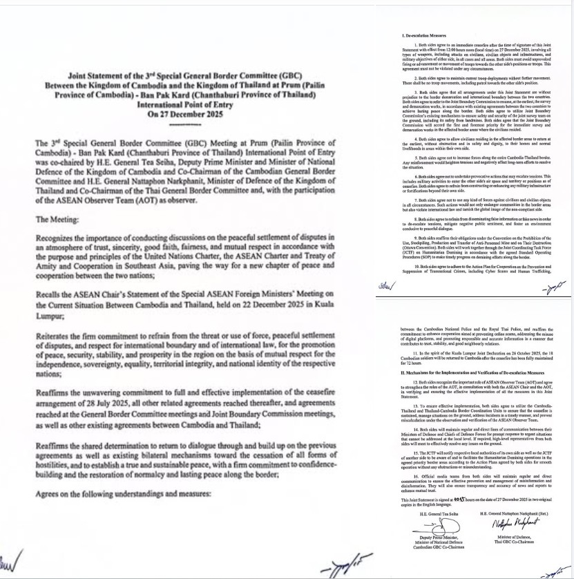 เปิดถ้อยแถลง Joint Statement การประชุม GBC ไทย-กัมพูชา พร้อมหยุดยิงทันที ตั้งแต่ 12.00 น. 27 ธ.ค.68