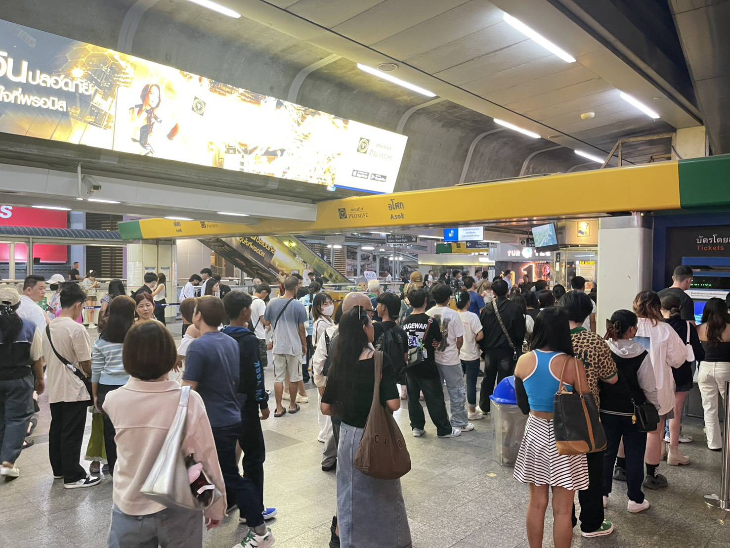– สายมหาชัยและสายแม่กลองรวม 15,062 คน-เที่ยว (ขาเข้า 7,195 คน-เที่ยว / ขาออก 7,867 คน-เที่ยว) รวม 42 ขบวน - ขณะที่ระบบรถไฟฟ้า มีผู้ใช้บริการรวม 957,550 คน-เที่ยว ต่ำกว่าประมาณการ 2.71% โดยยังคงมีการใช้บริการอย่างต่อเนื่อง โดยเฉพาะนักท่องเที่ยวที่เดินทางไปยังสถานที่สำคัญต่าง ๆ ในกรุงเทพฯ ทั้งนี้ ระบบรถไฟฟ้าทุกสายให้บริการได้ตามปกติ ไม่มีเหตุขัดข้อง ข้อมูลผู้ใช้บริการมีดังนี้