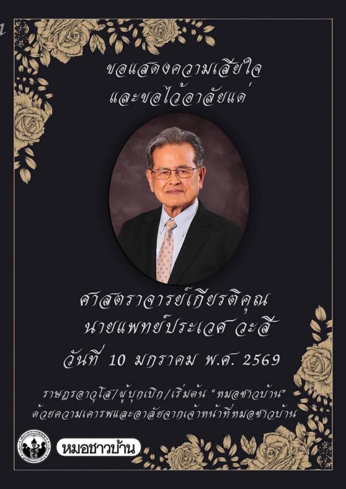 เมื่อวันที่ 11 ม.ค. ผู้สื่อข่าวรายงานว่า ศ.เกียรติคุณ นพ.ประเวศ วะสี ถึงแก่อนิจกรรม สิริอายุ 93 ปี