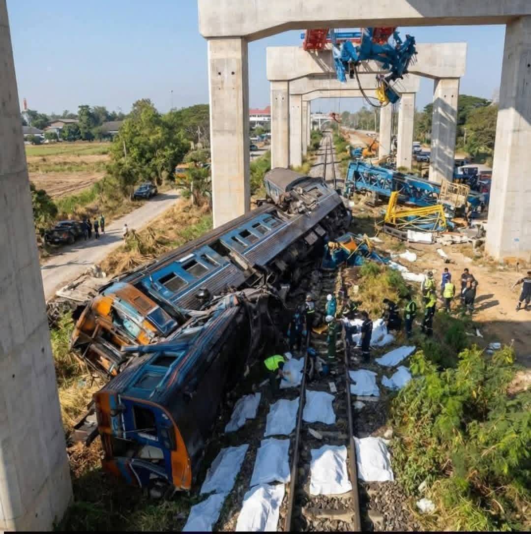 จากการตรวจสอบเบื้องต้น พบว่า ปั้นจั่นที่ใช้ยกซีเมนต์สำหรับงานก่อสร้างรถไฟความเร็วสูงเกิดหล่นลงมาทับโบกี้รถไฟจำนวน 3 โบกี้ ของขบวนที่ 21 เส้นทางสถานีกลางกรุงเทพอภิวัฒน์–อุบลราชธานี ส่งผลให้เกิดเพลิงลุกไหม้ ทำให้มีผู้เสียชีวิตและผู้ได้รับบาดเจ็บหลายราย โดยขณะเกิดเหตุมีลูกจ้างของบริษัท อิตาเลียนไทย ดีเวล๊อปเมนต์ จำกัด (มหาชน) ปฏิบัติงานอยู่จำนวน 10 ราย และยังมีผู้สูญหาย 1 ราย ซึ่งอยู่ระหว่างการตรวจสอบว่ายังมีชีวิตอยู่หรือไม่