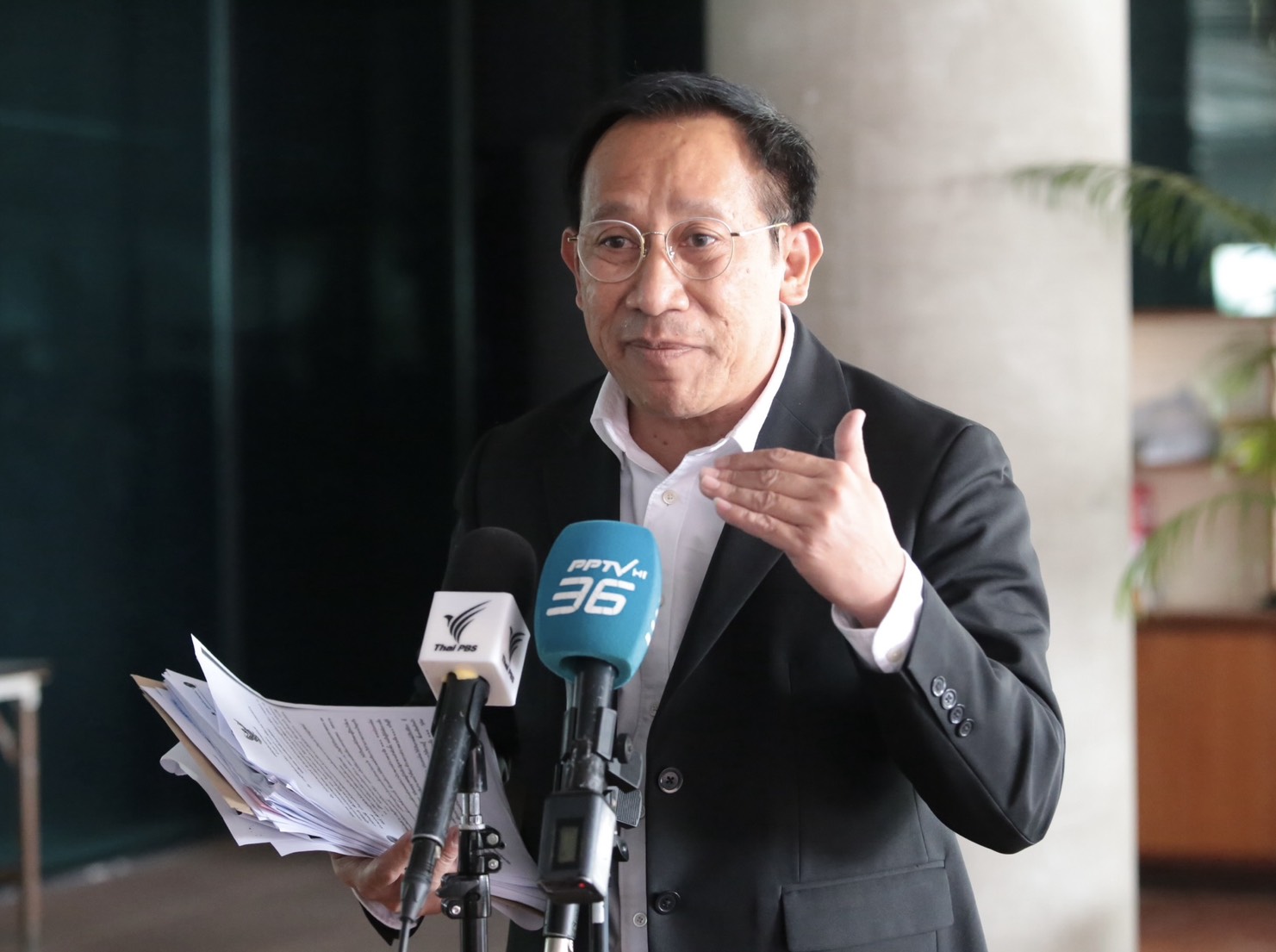 เมื่อถามว่ากรณีนายตำรวจชั้นผู้ใหญ่ซึ่งเป็นรองหัวหน้าพนักงานสอบสวน ออกมาให้ข้อมูลว่า คดีดังกล่าวเป็นคดีที่เกิดขึ้นใหม่ นายสัญญาภัชระ กล่าวว่า คำกล่าวหานั้นอาจคลาดเคลื่อนต่อข้อเท็จจริงและข้อกฎหมายอย่างยิ่ง ขอถามว่า ท่านทราบว่ากฎหมายกำหนดไว้อย่างไร ใครมีอำนาจสอบสวนหรือไต่สวน และการดำเนินคดีกับกรรมการ ป.ป.ช. ไม่ได้เกิดขึ้นเป็นครั้งแรก วันนี้พล.ต.อ.สุรเชษฐ์ มอบหมายให้ ตนในฐานะทนายความ มีหนังสือถึงประธานรัฐสภาคัดค้านการรับสำนวนและพยานหลักฐานจากพนักงานสอบสวนที่เข้าข่ายไม่ชอบด้วยกฎหมาย และขอให้ประธานรัฐสภาใช้ความละเอียดรอบคอบในการตรวจสอบข้อเท็จจริง ข้อกฎหมาย และรายละเอียดอื่นๆ ให้ครบถ้วนรอบด้านก่อน ก่อนจะส่งให้ประธานศาลฎีกา