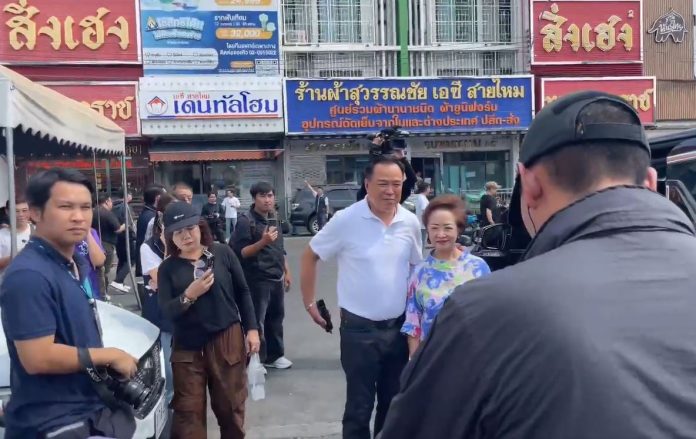 จากนั้น นายอนุทินเดินตลาดเช้าปากซอยพุ่มอุไร ทักทายประชาชน โดยมีประชาชนที่มาจับจ่ายซื้อของภายในตลาดหลายคนให้กำลังใจในการบริหารประเทศ