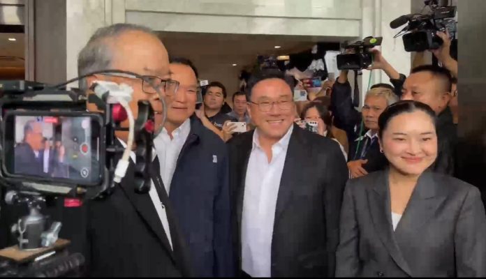 เมื่อวันที่ 12 มี.ค. 69 ผู้สื่อข่าวรายงานจากพรรคภูมิใจไทย (ภท.) ว่า เมื่อเวลา 13.30 น. ได้มีการประชุมสมาชิกสภาผู้แทนราษฎร (สส.) พรรคภูมิใจไทย โดยบรรดาแกนนำและ สส.ของพรรคทยอยเดินทางเข้าที่ทำการพรรคอย่างคึกคัก ท่ามกลางบรรยากาศการเมืองที่กำลังจับตาความเคลื่อนไหวของพรรคร่วมรัฐบาล