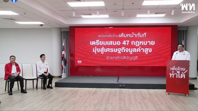 หัวหน้าพรรคเพื่อไทยย้ำที่ประชุม สส. ไม่ได้หารือเรื่องจัดสรรตำแหน่งรัฐมนตรี เน้นเตรียมผลักดันนโยบายและการทำงานในฐานะพรรคร่วมรัฐบาล พร้อมเปิดรับความเห็นสมาชิกก่อนตัดสินใจผ่านคณะกรรมการบริหารพรรค ขณะที่ “ยศชนัน” ระบุคะแนนนิยมจะกลับมาหรือไม่ขึ้นอยู่กับผลงาน ด้าน “ประเสริฐ” มั่นใจใช้เวลา 4 ปีฟื้นความเชื่อมั่นประชาชน