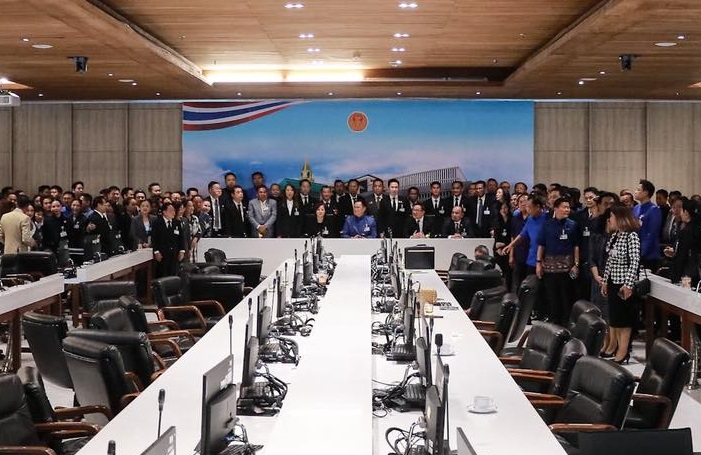บรรยากาศการประชุมในห้อง CB 406 เป็นไปอย่างพร้อมเพรียง เมื่อ ส.ส.จากพรรคภูมิใจไทย, พรรคเพื่อไทย, พรรคพลังประชารัฐ, พรรคประชาชาติ, พรรคเศรษฐกิจ, พรรคเพื่อชาติไทย, พรรครวมไทยสร้างชาติ, พรรคไทยสร้างไทย, พรรคใหม่, พรรครวมใจไทย, พรรคไทยทรัพย์ทวี, พรรครวมพลังประชาชน, พรรคมิติใหม่, พรรคประชาธิปไตยใหม่, พรรคทางเลือกใหม่ และพรรคโอกาสใหม่ รวม 292 เสียง ร่วมหารือก่อนการประชุมสภาผู้แทนราษฎรเพื่อลงมติเลือกนายกรัฐมนตรีตามมาตรา 159 ของรัฐธรรมนูญ