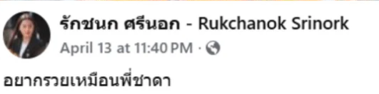 ต่อมา “ไอซ์” รักชนก ศรีนอก สส.พรรคประชาชน ได้โพสต์และแชร์คลิปดังกล่าวผ่านโซเชียล พร้อมข้อความว่า “อยากรวยเหมือนพี่ชาดา” ซึ่งถูกตีความว่าเป็นการตั้งคำถามเชิงสังคมต่อพฤติกรรมและภาพลักษณ์ของนักการเมืองในพื้นที่สาธารณะ