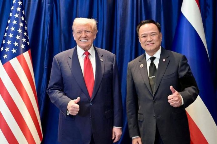 ประธานาธิบดี โดนัลด์ ทรัมป์ เผย ได้คุยโทรศัพท์กับ ‘ผู้นำไทย’ และ ‘ผู้นำกัมพูชา’ เพื่อไกล่เกลี่ยข้อพิพาทแล้ว สามารถรักษา ‘ข้อตกลงหยุดยิง’ ที่ดูเหมือนจะล้มเหลวได้ และเชื่อว่า ไทยและกัมพูชา “จะไม่มีปัญหาอะไร” เผย ได้ใช้ ‘มาตรการภาษี’ เจรจากับผู้นำทั้งสองด้วย