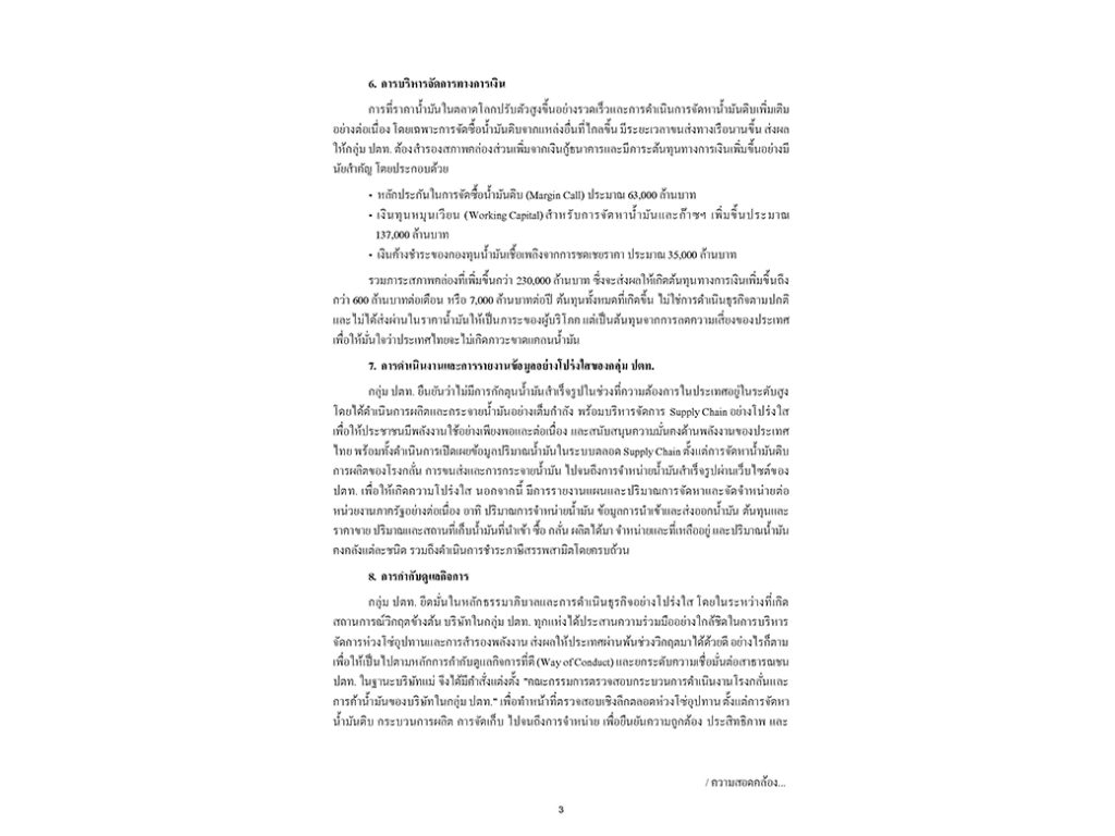 7. การดำเนินงานและการรายงานข้อมูลอย่างโปร่งใสของกลุ่ม ปตท.