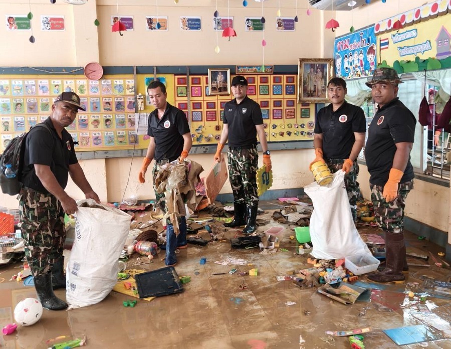 วันแรกของการปฏิบัติงาน เจ้าหน้าที่สามารถเก็บขยะ เศษวัสดุ โคลนตม และสิ่งปฏิกูลได้มากกว่า 300 ตัน พร้อมล้างทำความสะอาดอาคาร พื้นผิวถนน ทางเดิน และพื้นที่สาธารณะหลายจุดสำคัญ โดยเฉพาะบริเวณวัดหงส์ประดิษฐาราม (วัดคอหงส์) และโรงเรียนเทศบาล 3 โสภณพิทยาคุณนุสรณ์ ครอบคลุมพื้นที่กว่า 28,800 ตารางเมตร (18 ไร่) เพื่อป้องกันเชื้อโรคหลังน้ำลด