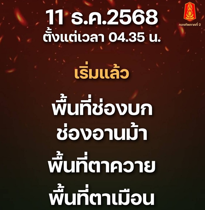 ขณะที่ เพจกองทัพภาคที่ 2 ระบุว่า ตั้งแต่เวลา 04.35 น. เริ่มแล้ว!