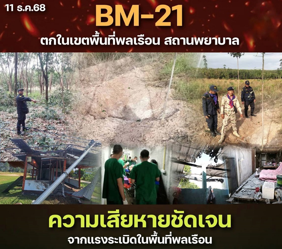 นอกจากนั้น ยังได้เผยแพร่ภาพ BM-21 ตกในเขตพื้นที่พลเรือน ความเสียหายชัดเจนจากแรงระเบิด เหตุปะทะลุกลามถึงพื้นที่ สวน-ไร่-บ้านเรือน และโรงพยาบาลได้รับผลกระทบ แม้ได้มีการอพยพประชาชนไปเรียบร้อย ไม่มีผู้ได้รับบาดเจ็บ หรือสูญเสีย ความปลอดภัยประชาชนต้องมาก่อน กองทัพภาคที่ 2 ยืนหยัดปกป้องอธิปไตยอย่างเต็มกำลัง