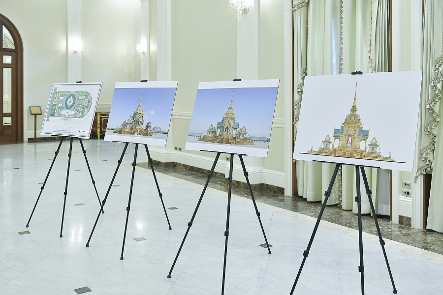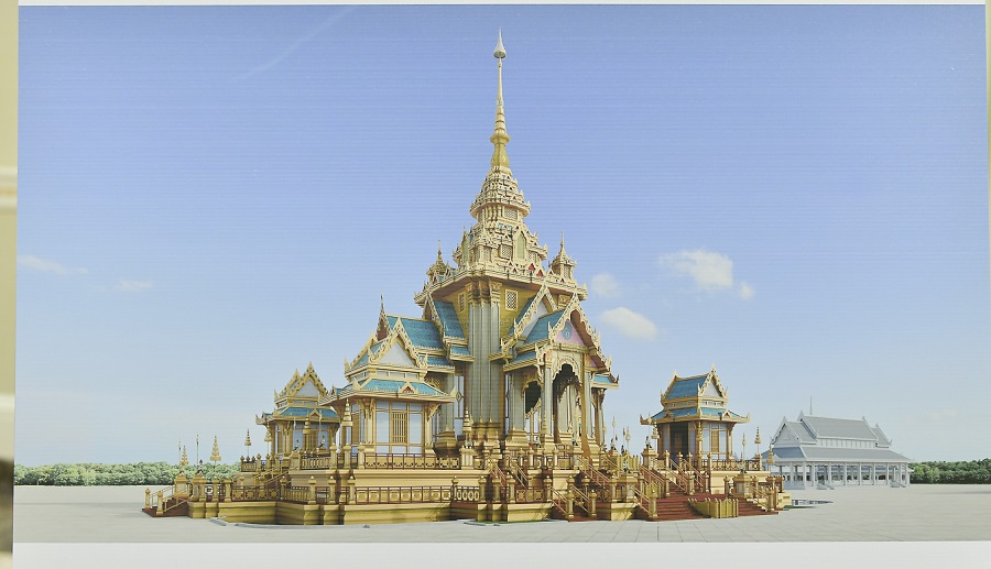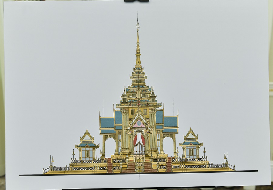 ในการนี้ เพื่อให้การจัดงานพระราชพิธีถวายพระเพลิงพระบรมศพเป็นไปตามพระราชประเพณี และสมพระเกียรติทุกประการ ได้กราบบังคมทูลเชิญสมเด็จพระกนิษฐาธิราชเจ้า กรมสมเด็จพระเทพรัตนราชสุดาฯ สยามบรมราชกุมารี ทรงเป็นองค์ที่ปรึกษาการจัดงานพระราชพิธีถวายพระเพลิงพระบรมศพในครั้งนี้ และมอบหมายให้กรมศิลปากร กระทรวงวัฒนธรรม รับผิดชอบการออกแบบและจัดสร้างพระเมรุมาศสิ่งปลูกสร้างประกอบพระเมรุมาศ การบูรณปฏิสังขรณ์ราชรถและพระยานมาศ การออกแบบพระหีบจันทน์ พระโกศจันทน์ และเครื่องสังเค็ดในพระราชพิธีถวายพระเพลิงพระบรมศพ ซึ่งพระบาทสมเด็จพระเจ้าอยู่หัวได้ทรงมีพระบรมราชนุมัติให้จัดสร้างตามรูปแบบที่รัฐบาลกราบบังคมทูลพระกรุณาแล้ว