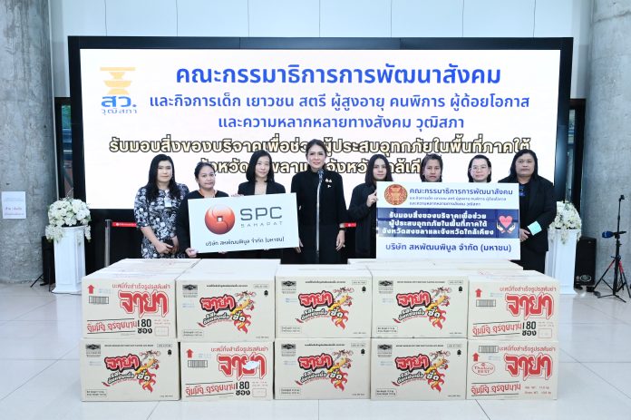 วันที่ 28 พ.ย.2568 เวลา 14.00 น. ที่รัฐสภา นางวราภัสร์ ไพพรรณรัตน์ สว. ในฐานะประธานคณะกรรมาธิการการพัฒนาสังคม และกิจการเด็ก เยาวชน สตรี ผู้สูงอายุ คนพิการ ผู้ด้อยโอกาส และความหลากหลายทางสังคม วุฒิสภา รับมอบสิ่งของบริจาคช่วยผู้ประสบอุทกภัย เพื่อช่วยเหลือพี่น้องประชาชนในพื้นที่ภาคใต้จังหวัดสงขลาและจังหวัดใกล้เคียง จากบริษัทเอกชน