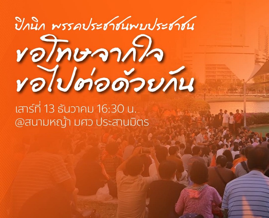 ผู้บริหารพรรคตั้งแต่อดีตถึงปัจจุบัน ผู้แทนราษฎรและอดีตผู้แทนราษฎรพรรคประชาชน จะขอโอกาสในการพูดคุยกับทุกท่านแบบเปิดใจ รับฟังทุกความเห็นทุกคำวิจารณ์ และกล่าวคำขอโทษต่อหน้าทุกท่านด้วยตัวเอง