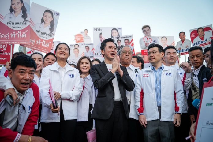 เวลา 06.52 น.พรรคไทยก้าวใหม่ นำโดยนายสุชัชวีร์ สุวรรณสวัสดิ์ หัวหน้าพรรคไทยก้าวใหม่ พร้อมด้วยคุณหญิงกัลยา โสภณพนิช ประธานที่ปรึกษาพรรค นำผู้สมัครมารถเมล์