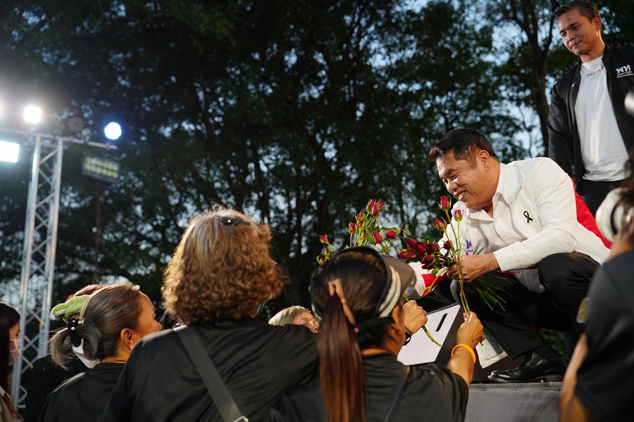 โดยในเวทีนี้มี นายสุริยะ จึงรุ่งเรืองกิจ ผู้อำนวยการการเลือกตั้งพรรคเพื่อไทย และแคนดิเดตนายกรัฐมนตรีของพรรค เป็นผู้นำการปราศรัยเป็นเวทีแรก พร้อมด้วย