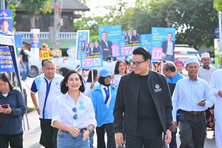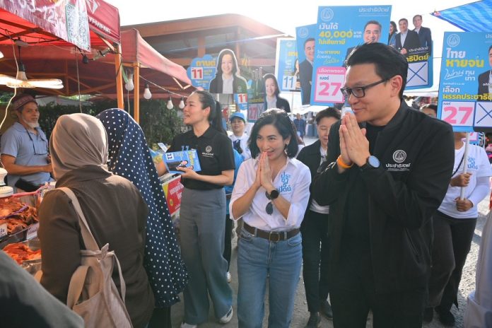 “การดี เลียวไพโรจน์” แคนดิเดต นายกฯพรรคประชาธิปัตย์ เดินเคียงบ่าเคียงไหล่ “สกลธี ภัททิยกุล” นำทีมผู้สมัคร สส.กทม. ลงหาเสียงพื้นที่เขต 18 มัสยิดอั้ลยุซรอ (หลอแหล) เขตสะพานสูง และเขต 19 พื้นที่ตลาดคุ้มเกล้า ลาดกระบังพร้อมชูนโยบายแก้ปัญหาเศรษฐกิจปากท้องคนกรุง “ไทยหายจน”