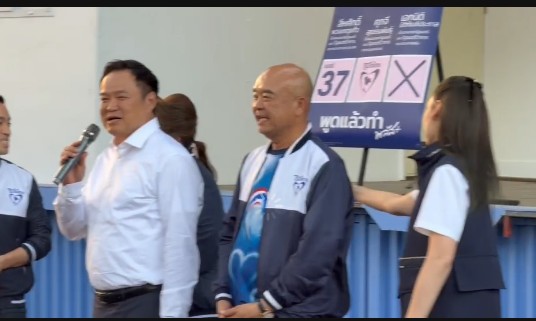 นายกรัฐมนตรีและหัวหน้าพรรคภูมิใจไทย ปรากฏตัวกะทันหันขึ้นเวทีปราศรัยย่อย เขตห้วยขวาง-วังทองหลาง ช่วยลูกพรรค ส.ส. พร้อมย้ำความมุ่งมั่นทำงานเพื่อประชาชนอย่างเต็มที่