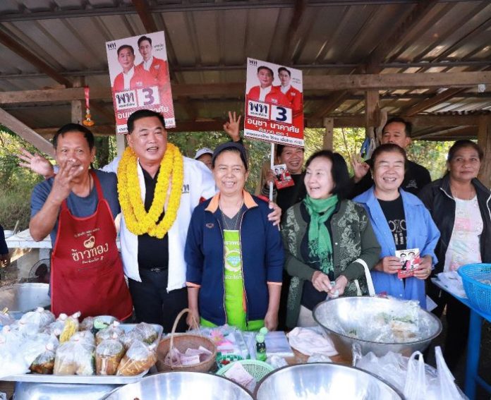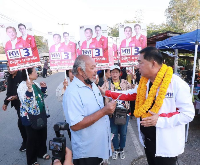 เมื่อวันที่ 12 ม.ค.69 ผู้สื่อข่าวรายงานว่า ที่บริเวณ ตลาดนัดชุมชนบึงกะทะ ต.ท่านฉนวน อ.มโนรมย์ จ.ชัยนาท นายอนุชา นาคาศัย ผู้สมัคร สส.เขต 1 จ.ชัยนาท พรรคเพื่อไทย (พท.) เบอร์ 3 พร้อมทีมหาเสียง ลงพื้นที่พบปะพี่น้องประชาชน พ่อค้า-แม่ค้า พร้อมชูนโยบายพรรค โดยเน้นการผลักดันราคาผลผลิตทางการเกษตร อย่างเช่น ข้าว ให้กับพี่น้องเกษตรกร ในราคา 15,000 บาทต่อตัน เพื่อช่วยเหลือพี่น้องประชาชน