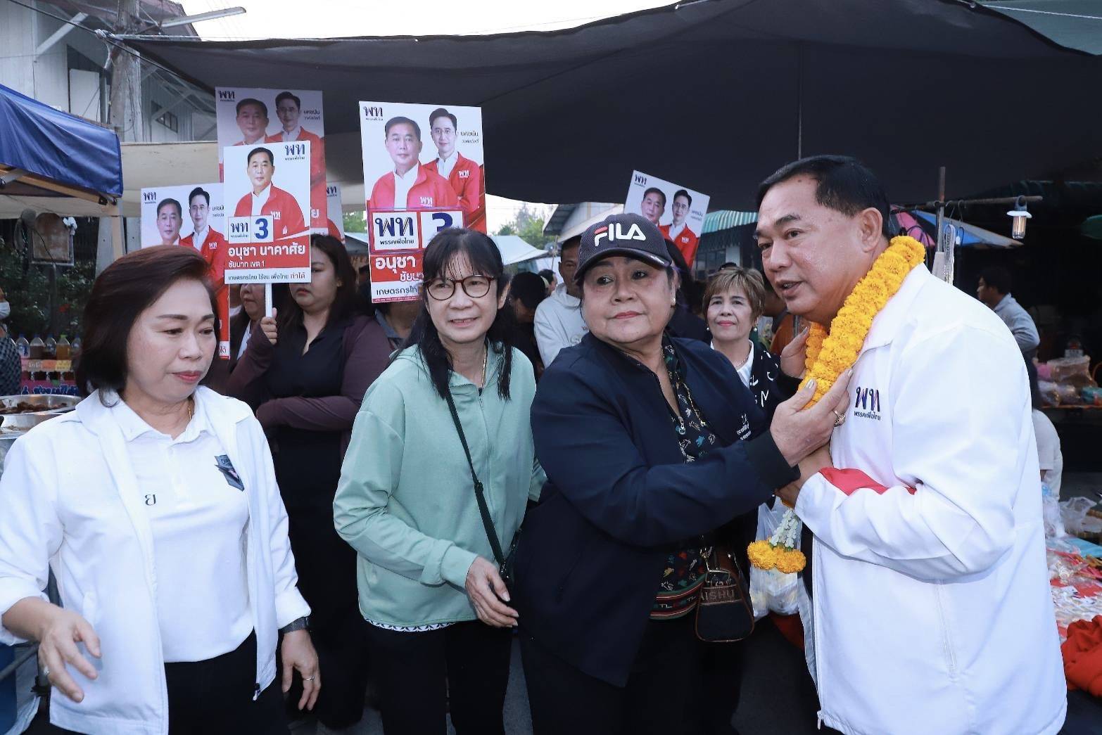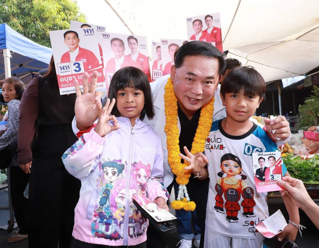 “พี่แฮงค์ อนุชา” ผู้สมัคร สส.ชัยนาท เบอร์ 3 พรรคเพื่อไทยลงพื้นที่พบปะประชาชนตลาดเช้าบางกระเบื้อง ชูนโยบายพรรคเพื่อไทยแก้ปัญหาปากท้อง ขณะที่คนในพื้นที่เชียร์ ให้ได้เป็นรัฐบาลมาแก้ไขปัญหาความยากจน