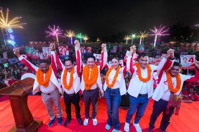 เมืองกาญจน์นับหมื่น เฮต้อนรับ ‘ยศชนัน’ นำทัพปราศรัย ลั่นใครเทาไม่เทา 8 ก.พ. เดี๋ยวประชาชนตัดสินเอง ยันเพื่อไทยพร้อมพลิกโฉมท่องเที่ยว-ปราบยาเสพติด-เดินหน้าจัดสรรที่ดิน สปก. ยืนยันไม่โจมตีใคร เดินหน้าด้วยนโยบายสานต่อความฝันประชาชนให้เป็นจริง ด้าน ‘ณัฐวุฒิ’ ควง ‘พานทองแท้’ ขอแรงหนุนเลือก สส.เพื่อไทย ยกเมืองกาญจนบุรี