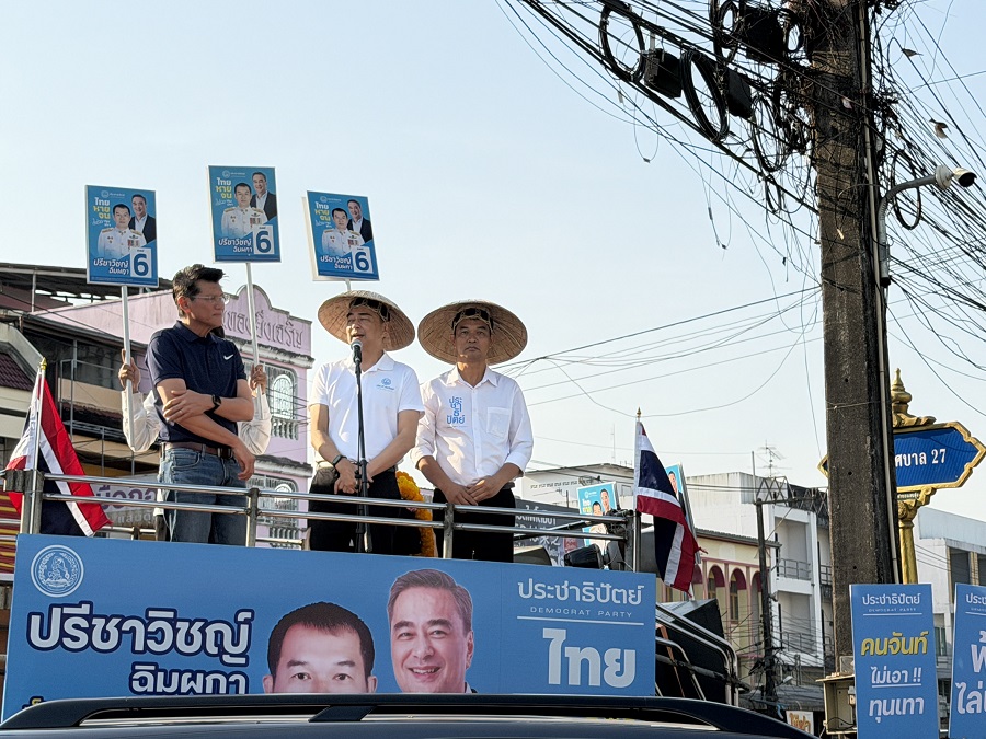 เมื่อวันที่ 23 ม.ค.69 นายอภิสิทธิ์ เวชชาชีวะ หัวหน้าพรรคประชาธิปัตย์และแคนดิเดตนายกรัฐมนตรี พร้อมด้วยแกนนำพรรคอย่าง นายสาทิตย์ วงศ์หนองเตย และนายสาธิต ปิตุเตชะ รองหัวหน้าพรรค นายธีระ สลักเพชร อดีต สส.ตราด ประชาธิปัตย์ 5 สมัย รวมพลังลงพื้นที่พบปะพี่น้องประชาชน ที่ตลาดสดเทศบาลแสนตุ้ง อำเภอเขาสมิง จังหวัดตราด