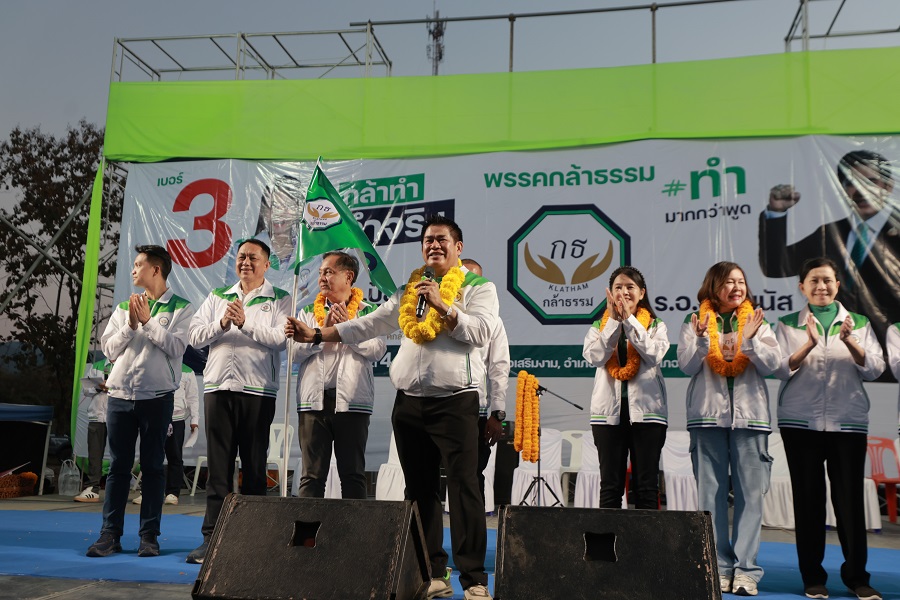เมื่อวันที่ 26 ม.ค.69 เวลา 18.00 น.ที่โรงเรียนเถินวิทยา ต.แม่ปะ อ.เถิน จังหวัดลำปาง พรรคกล้าธรรม นำโดย ร.อ.ธรรมนัส พรหมเผ่า ประธานที่ปรึกษาพรรคกล้าธรรม และแคนดิเดตนายกรัฐมนตรี และ ศ.ดร.นฤมล ภิญโญสินวัฒน์ หัวหน้าพรรคกล้าธรรม และ นางปวีณา หงสกุล ประธานที่ปรึกษาพรรคกล้าธรรมฝ่ายสังคม ขึ้นเวทีปราศรัยหาเสียงช่วยผู้สมัคร สส.จังหวัดลำปาง ของพรรค ประกอบด้วย เขตเลือกตั้งที่ 1 หมายเลข 1 นายอริวัฒน์ ศรีไชยานุนท์,เขตเลือกตั้งที่ 2‘หมายเลข 5 นายดาชัย เอกปฐพี,เขตเลือกตั้งที่ 3 หมายเลข 1 นางระพีพรรณ โพธิ์ทอง และเขตเลือกตั้งที่ 4 หมายเลข 3 นางสาวเพ็ญภัค รัตนคำพู โดยบรรยากาศการเมืองที่จังหวัดลำปางเป็นไปอย่างคึกคัก มีประชาชนมาร่วมรับฟังอย่างเนืองแน่น