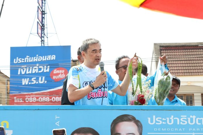 วันที่ 1 ก.พ.69 นายอภิสิทธิ์ เวชชาชีวะ หัวหน้าพรรคประชาธิปัตย์ และแคนดิเดตนายกรัฐมนตรี พร้อมด้วยชัยชนะ เดชเดโช รองหัวหน้าพรรคฯดูแลพื้นที่ภาคใต้ นายอิสรา สุนทรวัฒน์ รองหัวหน้าพรรคฯ นายสาทิตย์ วงศ์หนองเตย รองหัวหน้าพรรคฯ ลงพื้นที่ตลาดทุ่งยาง อ.ทุ่งใหญ่ จ.นครศรีธรรมราช เพื่อช่วย นายจอมไกร สวัสดิวงศ์ ผู้สมัครสส.เขต 6 โดยมีประชาชนมารอต้อนรับ และมารอฟังการปราศรัยจำนวนมาก โดยนายอภิสิทธิ์สวมเสื้อ “คนใต้ใจเดียว ไม่เท่แล้วแหลงไหรแล้ว”