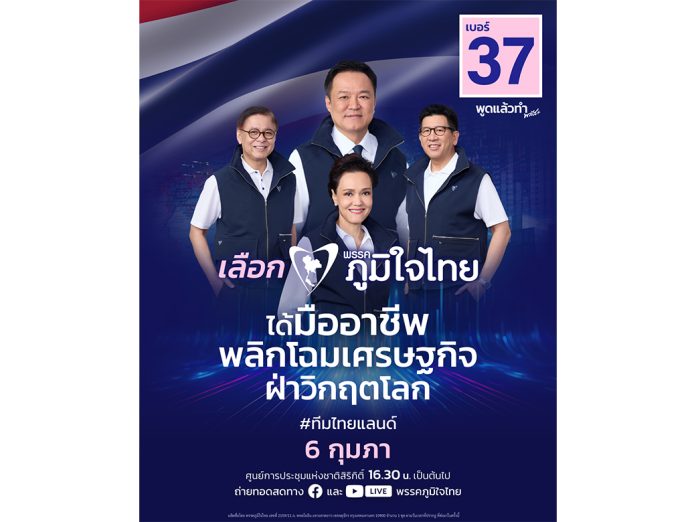 6 ก.พ.นี้ ! ภูมิใจไทย จัดทัพใหญ่เวที ศูนย์ฯ สิริกิติ์ “อนุทิน” นำปราศรัยปิดโค้งสุดท้าย “เลือกพรรคภูมิใจไทย ได้มืออาชีพ พลิกโฉมเศรษฐกิจ ฝ่าวิกฤตโลก”