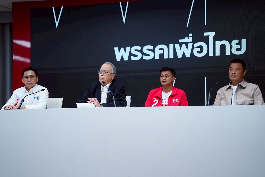 เมื่อวันที่ 5 ก.พ.69 ที่พรรคเพื่อไทย กรุงเทพฯ นายชูศักดิ์ ศิรินิล รองหัวหน้าพรรคเพื่อไทยและผู้สมัคร สส.บัญชีรายชื่อ พร้อมด้วย นายศึกษิษฏ์ ศรีจอมขวัญ โฆษกพรรคเพื่อไทย และผู้สมัคร สส.บัญชีรายชื่อ, นายนรวิชญ์ หล้าแหล่ง ผู้สมัคร สส.บัญชีรายชื่อ, นายพนม โพธิ์แก้ว (สส.ไก่) ผู้สมัคร สส.กาญจนบุรี เขต 5, นายอานนท์ ถนอมวงษ์ (สจ.ตูน) อดีต ส.อบจ.กาญจนบุรี แถลงข่าวกรณีคลิปเสียงการสนทนา “ประกาศศักดา” ที่มีเสียงชายปริศนาคนหนึ่งโทรศัพท์คุยกับ สจ.รายหนึ่ง เพื่อให้ช่วยสนับสนุนการเลือกตั้งในพื้นที่จังหวัดกาญจนบุรี