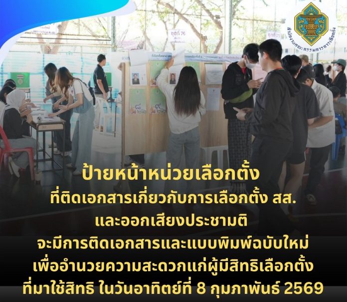 เมื่อวันที่ 7 ก.พ.69 สำนักงานคณะกรรมการการเลือกตั้งเผยแพร่ข่าวเลขที่ 146/2569 ว่า ป้ายหน้าหน่วยเลือกตั้ง ที่ติดเอกสารเกี่ยวกับการเลือกตั้ง สส. และออกเสียงประชามติ จะมีการติดเอกสารและแบบพิมพ์ฉบับใหม่ เพื่ออำนวยความสะดวกแก่ผู้มีสิทธิเลือกตั้งที่มาใช้สิทธิ ในวันอาทิตย์ที่ 8 กุมภาพันธ์ 2569